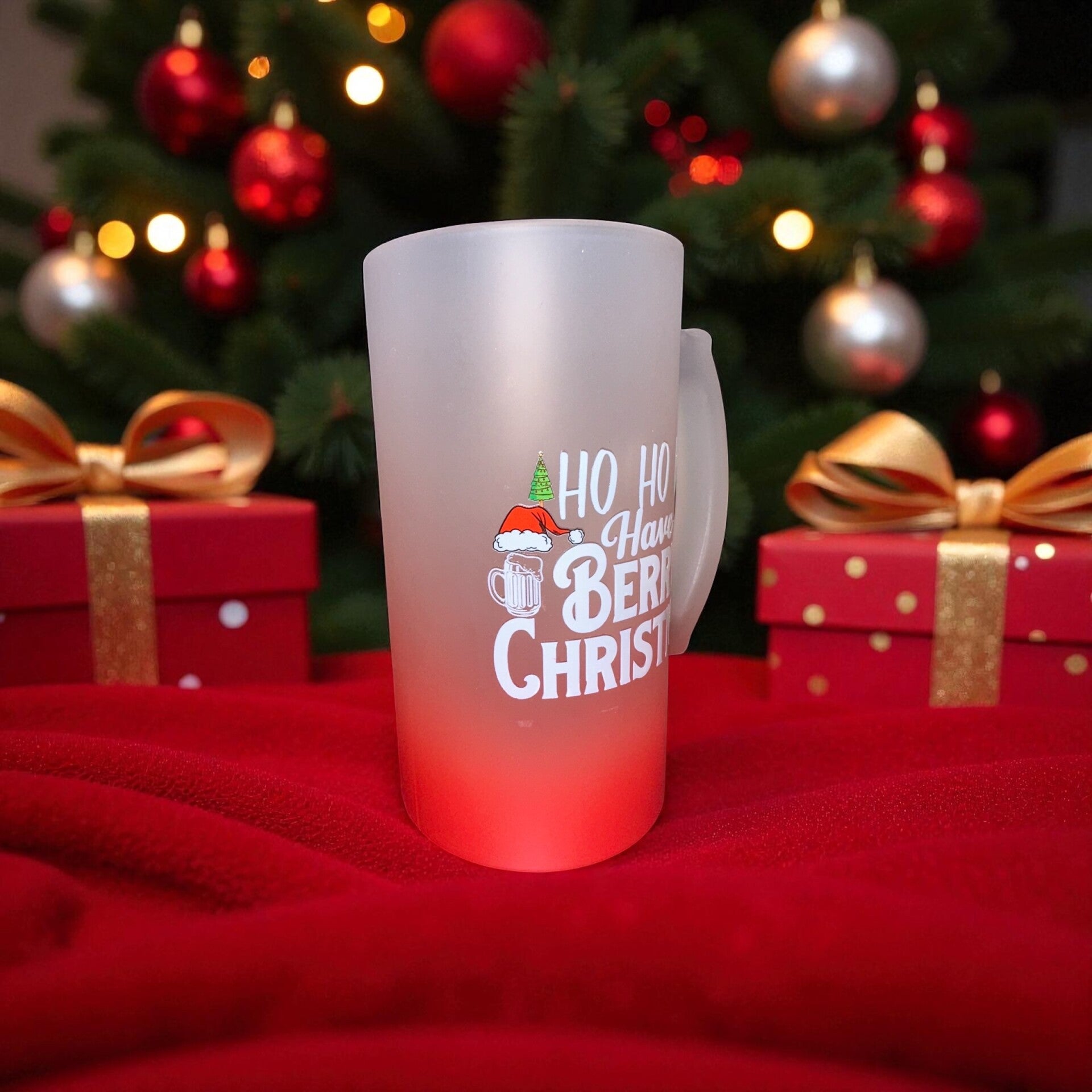 * Red Frosted 16oz Glass: This Christmas beer glass features a festive Santa design, perfect for holiday celebrations.