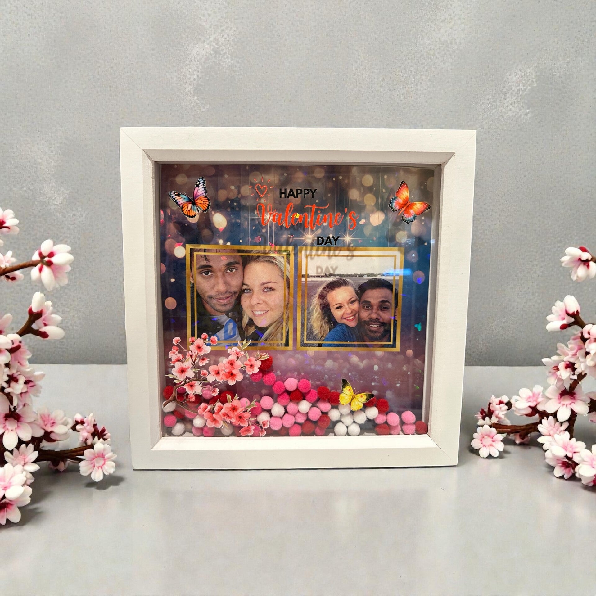 Personalised Valentine's Day Shadow Box Frame with Butterflies and Flowers for Couples 21.5X21.5 cm